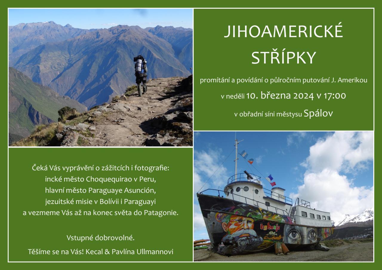 promítání a povídání o půlročním putování J. Amerikou v neděli 10. března 2024 v 17:00 hod. v obřadní síni městysu Spálov