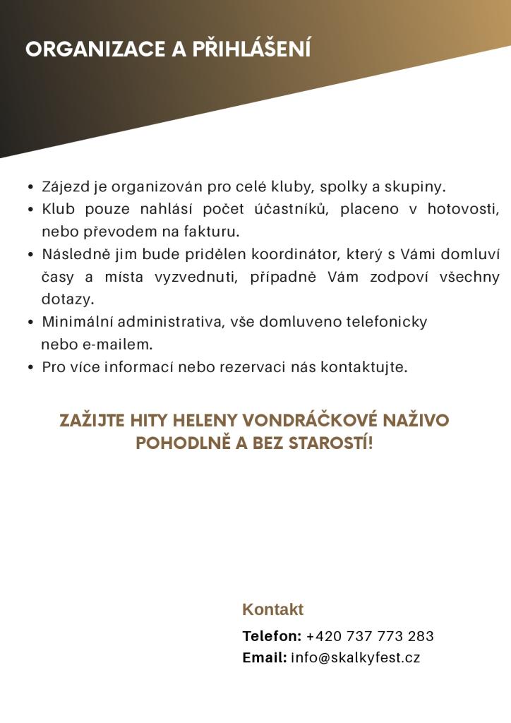 Zájezd je organizován pro celé kluby, spolky a skupiny.