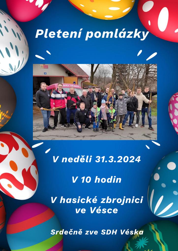 V neděli 31. 3. 2024 od 10 hodin v hasičské zbrojnici ve Vésce. Pořádá SDH Véska.